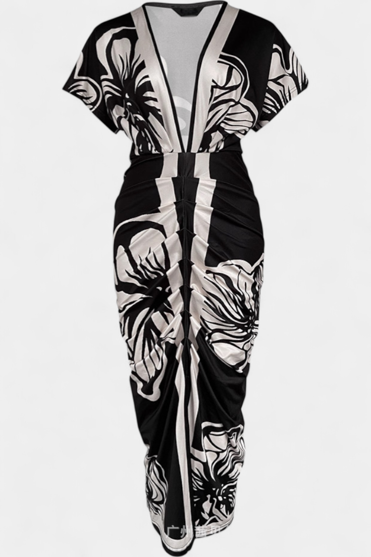 Diva Robe Longue à Imprimé Floral et Fente Latérale