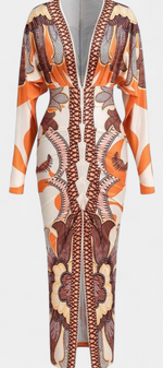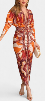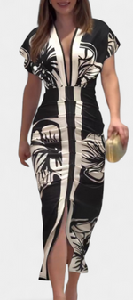 Féminine et sophistiquée, la robe Diva allie un élégant imprimé floral à un décolleté en V prononcé et une fente latérale qui apporte du mouvement et une touche sensuelle. Confectionnée dans un tissu premium doux et respirant, elle offre un confort tout au long de la journée sans renoncer au style. Sa taille cintrée met en valeur la silhouette, tandis que les manches longues équilibrent le look pour une finition raffinée.