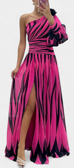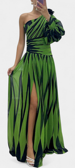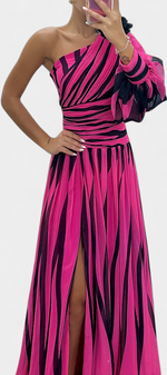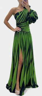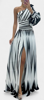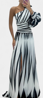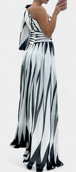 Une robe qui transforme la simplicité en déclaration de style. La Bethania allie l'attrait asymétrique d'une seule épaule à un motif de rayures douces qui allongent la silhouette et apportent du dynamisme. Légère, fluide et pleine de présence, elle est idéale pour les occasions où vous souhaitez vous démarquer avec sophistication sans effort.