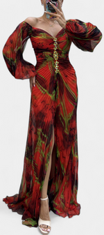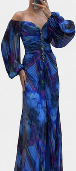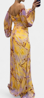 Quintessa Robe de Soirée Off-Shoulder Plissée à Manches Bouffantes
