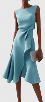 Sophistication moderne avec une silhouette qui éblouit avec grâce. La robe Claudia combine une coupe midi avec un drapé asymétrique et des lignes épurées qui mettent en valeur la silhouette sans effort. Conçue pour attirer les regards lors de mariages, de dîners spéciaux ou de tout événement où vous souhaitez vous démarquer avec un style raffiné.