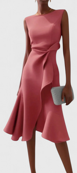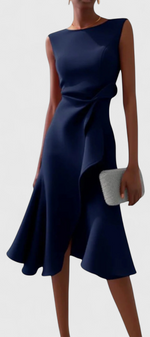 Claudia Robe Midi Asymétrique à Drapé Élégant