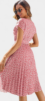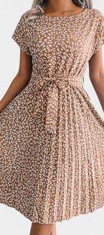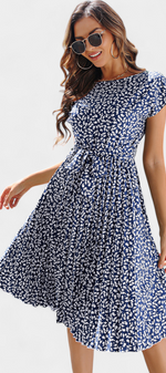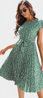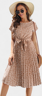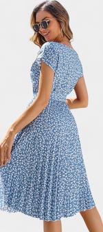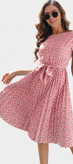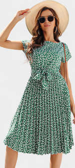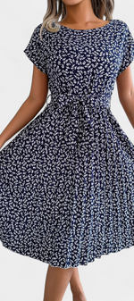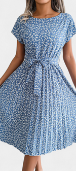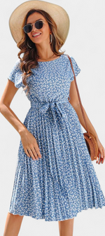 Raffinée, féminine et avec un charme bucolique, la robe Galilea évoque l'élégance d'une journée au soleil parmi des champs en fleurs. Son décolleté rond et sa taille cintrée mettent en valeur la silhouette avec naturel, tandis que la jupe plissée apporte mouvement et grâce à chaque pas.