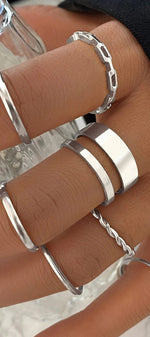 Polyvalent et à la pointe des tendances, cet ensemble de 7 anneaux offre un mélange de formes et de textures pour d'innombrables options de style. Que ce soit empilés, espacés ou portés sur les deux mains, chaque anneau ajoute une couche de personnalité à votre look quotidien.
