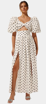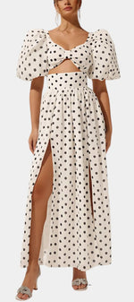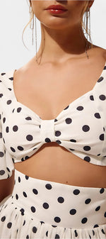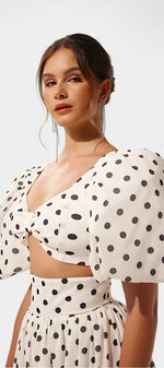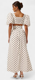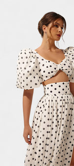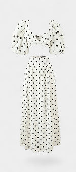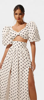 Sherine Ensemble à Pois avec Top à Manches Bouffantes et Jupe à Fente Frontale