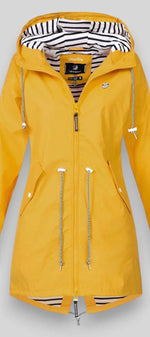Fonctionnelle et flatteuse, la Veste de Pluie Imperméable avec Capuche Aria allie style moderne et praticité pour tous les temps. Conçue pour le mouvement et faite pour être vue, elle offre un confort léger, une silhouette ajustée et juste la bonne dose de charme—pour que vous vous sentiez en sécurité, peu importe ce que le ciel vous réserve.
