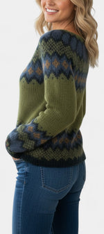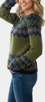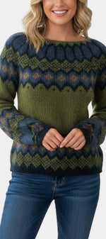 Dianella capture l’esprit des paysages d’hiver avec son allure à la fois chaleureuse et élégante. Tricoté dans une maille douce et moelleuse, ce pull se distingue par ses motifs nordiques subtils et sa palette profonde, parfaite pour la saison froide. Sa coupe légèrement ample et son col rond offrent un confort naturel sans compromettre le style.
