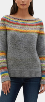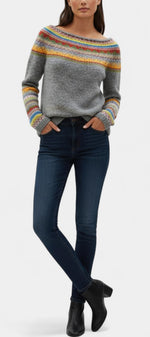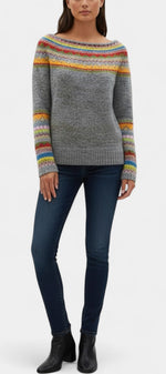 Néria Pull Jacquard en Maille Douce à Encolure Bateau
