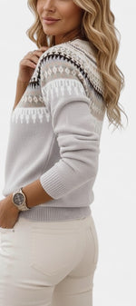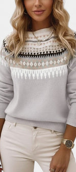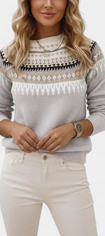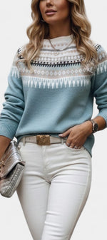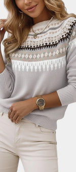Tatiane Pull Jacquard Scandinave à Col Rond en Maille Douce
