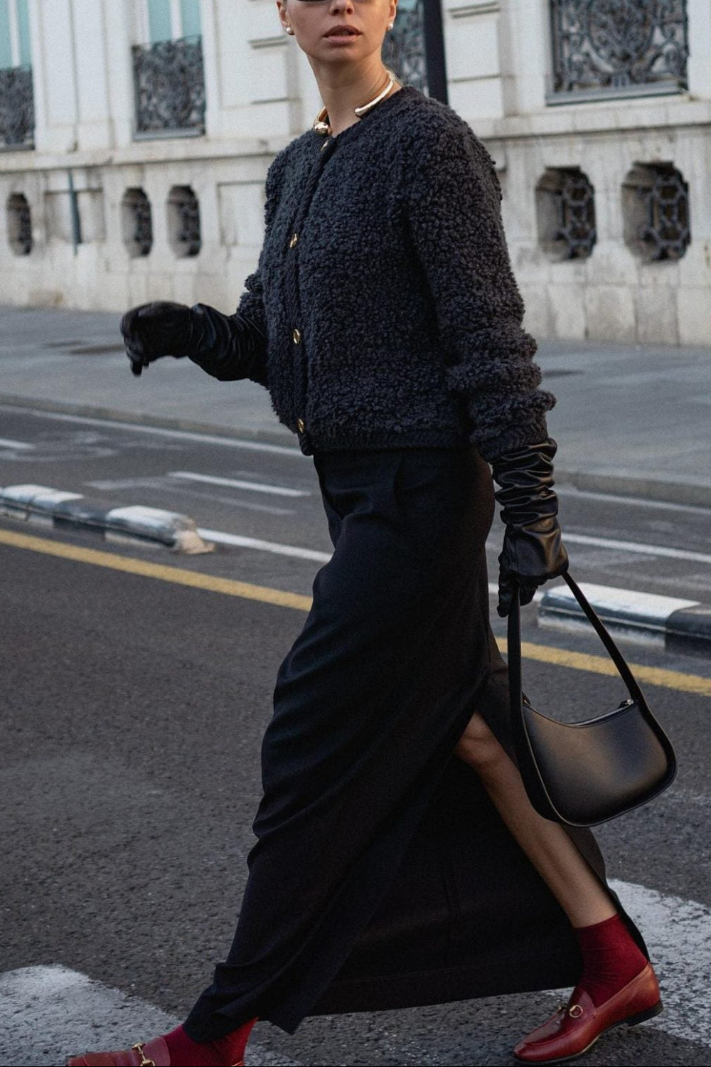 Une pièce confortable qui allie douceur et style dans un équilibre parfait. Chenda enveloppe avec sa texture en peluche tout en maintenant une silhouette épurée et polyvalente. Sa coupe courte en fait un essentiel moderne à superposer avec des t-shirts, blouses ou cols roulés, apportant un luxe décontracté à n'importe quelle tenue.