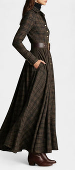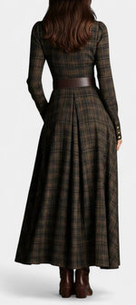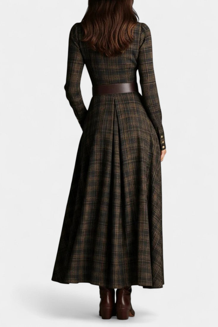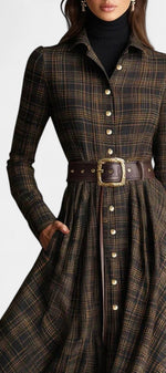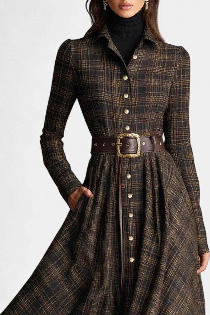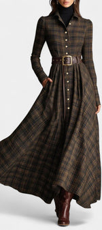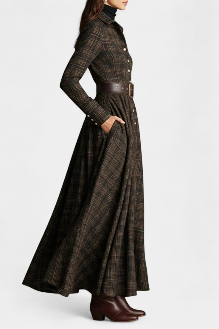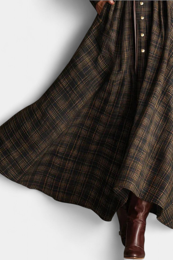 Aliette Robe Longue Chemise à Col en Plaid Marron et Noir