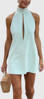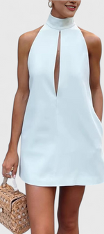 Sophistiquée et audacieuse avec une touche minimaliste. La Robe Mini Halter Arely se distingue par son design avec des ouvertures symétriques à l'avant et à l'arrière, équilibrées par un col haut élégant et des lignes épurées. Sa silhouette structurée apporte une présence sans effort, idéale pour des soirées modernes ou des événements stylés.