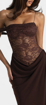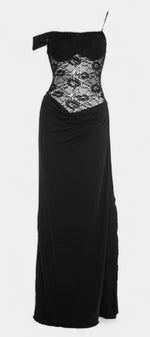 La robe Castanza redéfinit l'élégance avec un design en dentelle délicate et un ourlet asymétrique qui apporte dynamisme et sophistication. Sa silhouette fluide met en valeur différentes morphologies, tandis que le tissu léger avec un léger stretch assure confort sans perdre son allure raffinée.