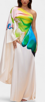 Une silhouette sculpturale qui allie originalité et élégance. La robe Beryl se distingue par son design asymétrique à une seule manche, sa chute fluide et son imprimé contemporain qui ne passe pas inaperçu. Parfaite pour celles qui souhaitent se démarquer avec une esthétique moderne et raffinée.