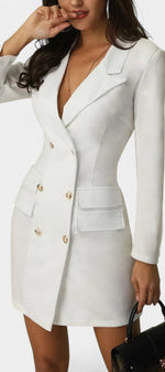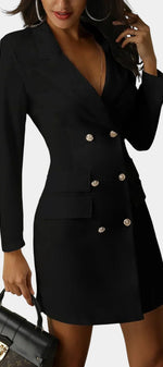 Raffinée et sûre d'elle, la robe Heidi réinvente la couture classique avec une approche féminine et sophistiquée. Sa silhouette inspirée du blazer, combinée à une fermeture à double boutonnage et un tissu haut de gamme, projette une présence impeccable qui s'adapte aussi bien aux événements formels qu'aux soirées élégantes.