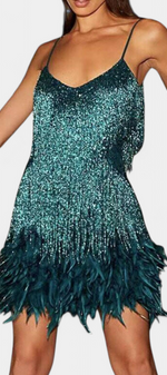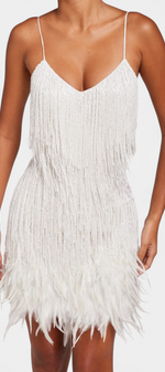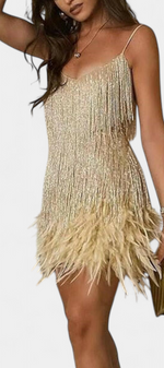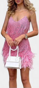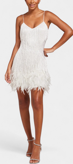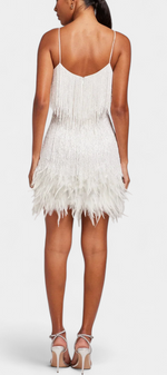 Sheril Robe Mini à Détails en Plumes et Silhouette Glamour