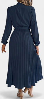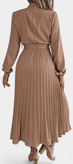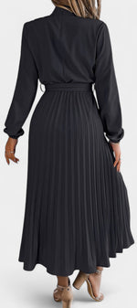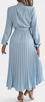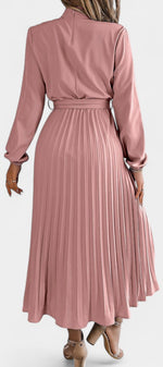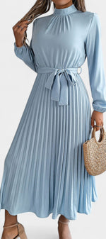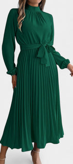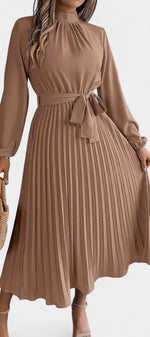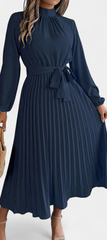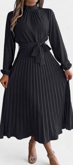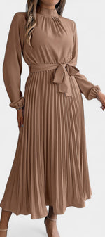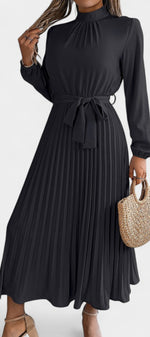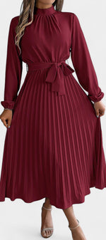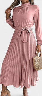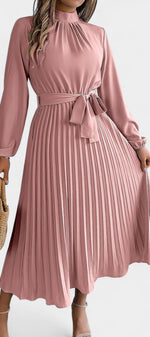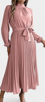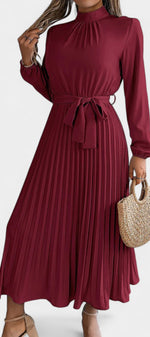Morgane Robe Plissée à Col Montant Froncé et Taille Nouée