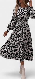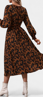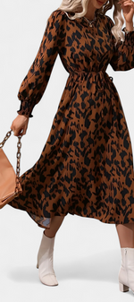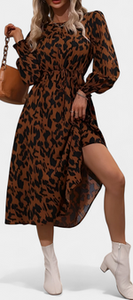 Nerin Robe Trapèze à Imprimé Léopard avec Ceinture Ajustable