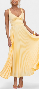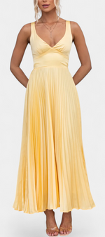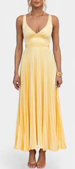 Radieuse et féminine, la robe Arlena éblouit avec sa silhouette plissée, son décolleté en V et son dos croisé découvert. Conçue pour celles qui recherchent fluidité, élégance et légèreté, elle est parfaite pour des événements ensoleillés, des célébrations en plein air ou des soirées d'été charmantes.