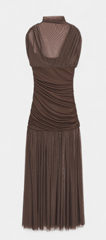 Minimaliste et séduisante, la robe Noelia allie la structure d'une robe bodycon à la légèreté de la maille plissée pour créer un look sophistiqué et raffiné. Son design sans manches avec col montant allonge la silhouette, tandis que les bretelles ajustables et le drapé apportent une touche moderne et flatteuse. La fermeture cachée dans la couture latérale garantit une finition impeccable et soignée.