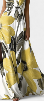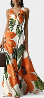 Regina Robe Longue à Imprimé Floral et Décolleté en V avec Silhouette en A