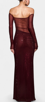 Dottie Robe Off-Shoulder Ajustée à Transparences Subtiles et Silhouette Élancée