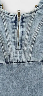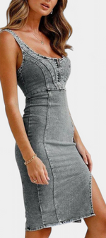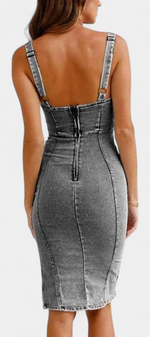 Janessa Robe Bodycon en Denim à Zip Frontal et Fente Haute