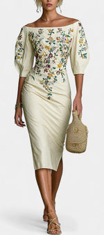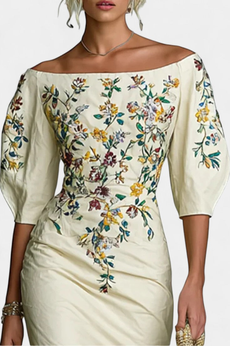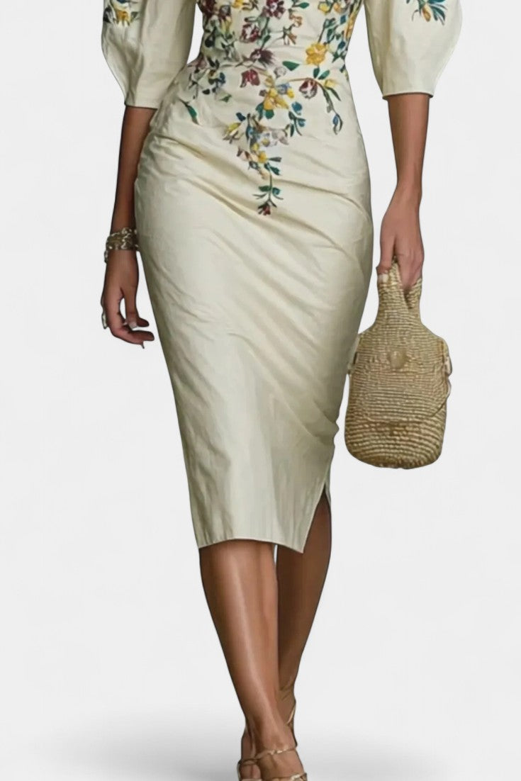 Mirandria incarne une féminité affirmée et élégante à travers un jeu subtil entre modernité et romantisme. Son design à une épaule crée une allure sculpturale et raffinée, tandis que son imprimé floral intemporel apporte douceur et fraîcheur. La taille cintrée et la jupe midi fendue dessinent une silhouette fluide et gracieuse, parfaite pour rayonner avec distinction.