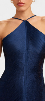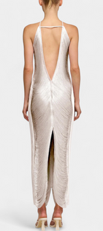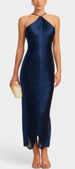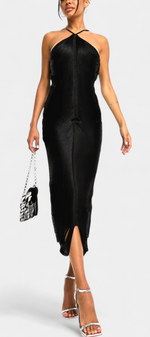 • Décolleté halter avec un dos en V profond pour une finition sensuelle