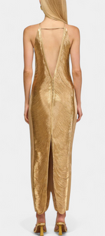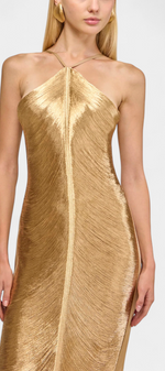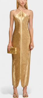 Jianna Robe Halter à Franges Dorées et Dos Nu Sophistiqué