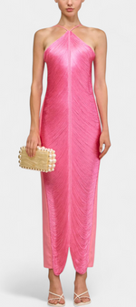 Audacieuse et magnétique, la robe Jianna élève la féminité avec un détail percutant. Son design halter avec des franges dorées crée un effet visuel captivant qui affine la silhouette, tandis que les panneaux latéraux solides et le dos nu ajoutent une touche de sophistication moderne. Une pièce qui allie glamour et confiance à chaque mouvement.