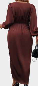 Giada Robe Longue à Manches Bouffantes et Fente Latérale