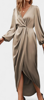 Plongez dans l'élégance de la nuit avec Giada, une robe à finition fluide conçue pour mettre en valeur et captiver. Avec son décolleté en V prononcé, ses douces manches bouffantes et sa taille froncée qui sublime la silhouette, Giada apporte sophistication à chaque mouvement. La fente latérale ajoute une touche moderne et séduisante, parfaite pour des soirées qui exigent un style inoubliable.