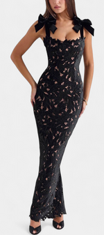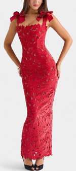 Féminine et sophistiquée, la robe Vasanta est conçue pour se démarquer lors d'occasions mémorables. Avec ses délicates bretelles en nœud qui encadrent les épaules et sa coupe longue fluide, elle allie charme ludique et élégance intemporelle. Sa silhouette raffinée en fait le choix parfait pour des fêtes festives, des mariages ou des dîners de haut niveau.