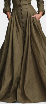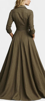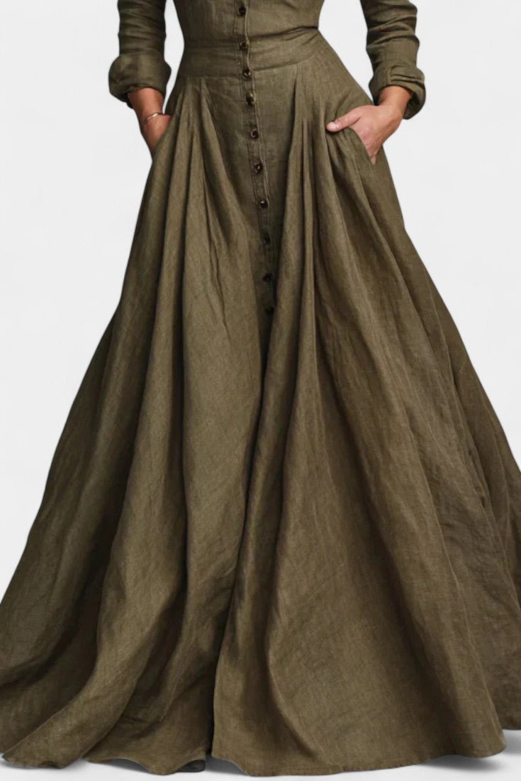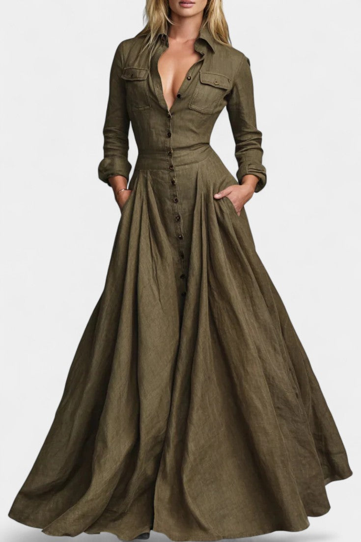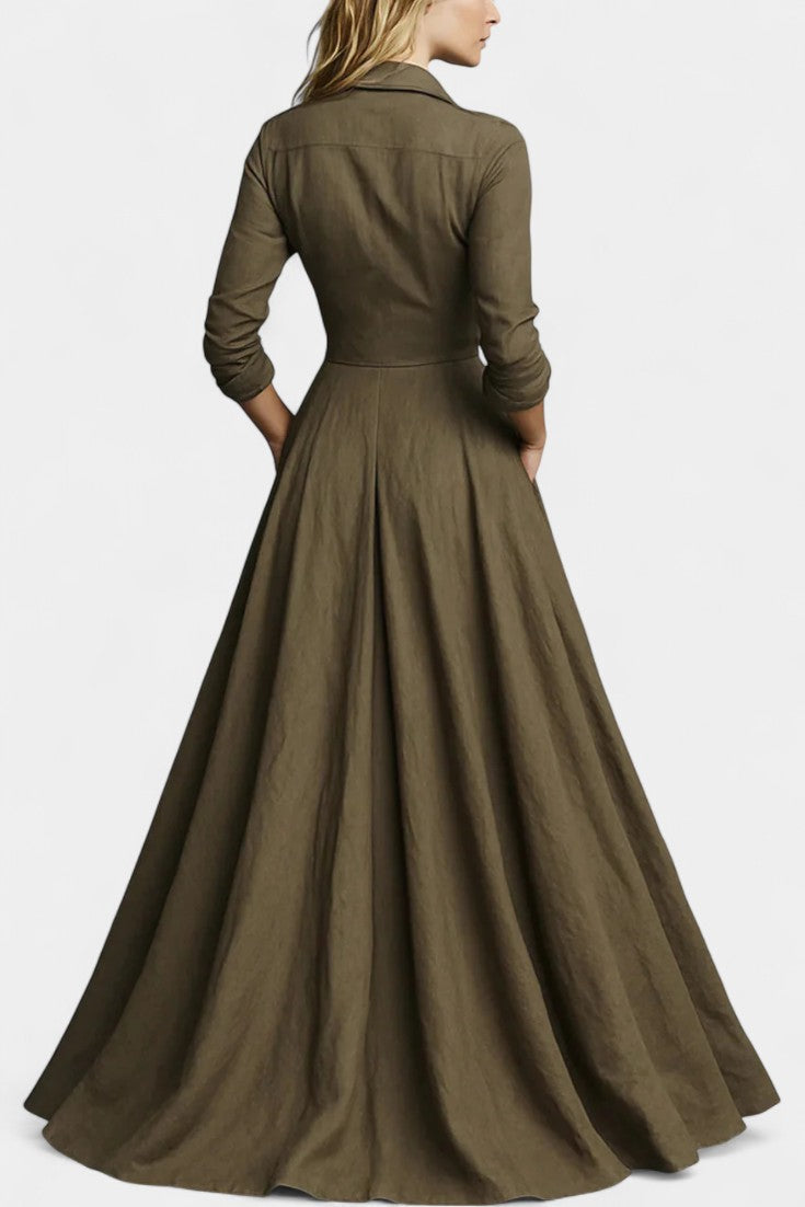 Grainne réinvente la robe chemise avec une élégance inspirée du vintage et une touche de modernité. Son col structuré et sa fermeture à boutons rappellent le charme classique des silhouettes d’antan, tandis que sa coupe fluide et sa longueur maxi apportent un souffle contemporain et raffiné. Confectionnée dans un mélange léger de coton et de polyester, elle offre un confort naturel pour un style sans effort.