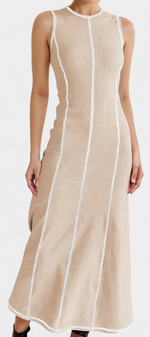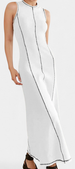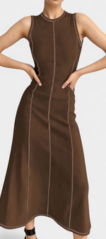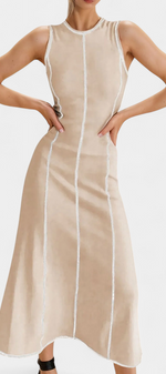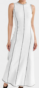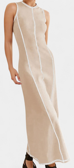 Une silhouette moderne qui allie simplicité et distinction. Santona se distingue par un design en bloc de couleur qui apporte une force visuelle, accompagné d'un col rond classique et d'une silhouette en A qui fluide naturellement. Sa coupe sans manches ajoute de la fraîcheur, en faisant une pièce polyvalente pour différentes occasions.
