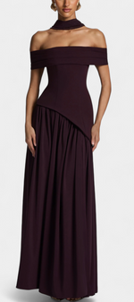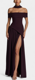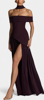 Celaena Robe Off Shoulder en Chiffon avec Fente Latérale