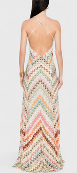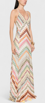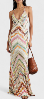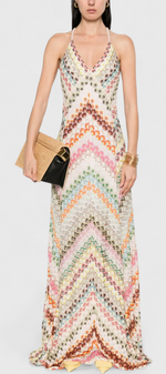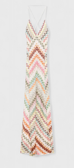 Charme artisanal dans une silhouette fluide et sophistiquée. La robe Agustina se distingue par sa délicate dentelle et son motif zigzag, créant une texture légère qui met en valeur chaque mouvement. Son décolleté en V apporte une touche élégante et féminine, tandis que le design long enveloppe la silhouette avec naturel et distinction.