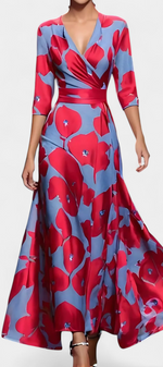 Avec une élégance sans effort, la robe Lauren allie féminité intemporelle et grâce naturelle. Avec un décolleté en V et un design enveloppant qui met en valeur et allonge la silhouette, une taille définie et une jupe maxi fluide, elle est ornée de délicats imprimés floraux et conçue pour se mouvoir avec beauté, des événements formels aux dîners au crépuscule.