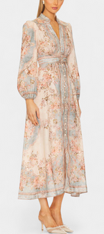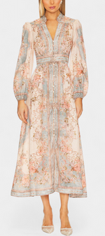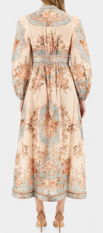 Dorotila Robe Maxi à Imprimé Floral et Manches Bouffantes