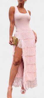 Kalani Robe Ajustée à Franges en Couches et Fentes Latérales