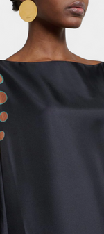 • Décolleté bateau qui encadre le visage avec une touche chic et élégante