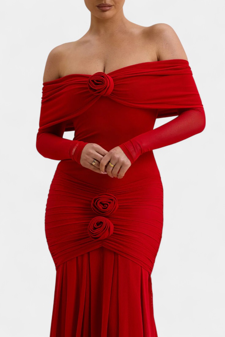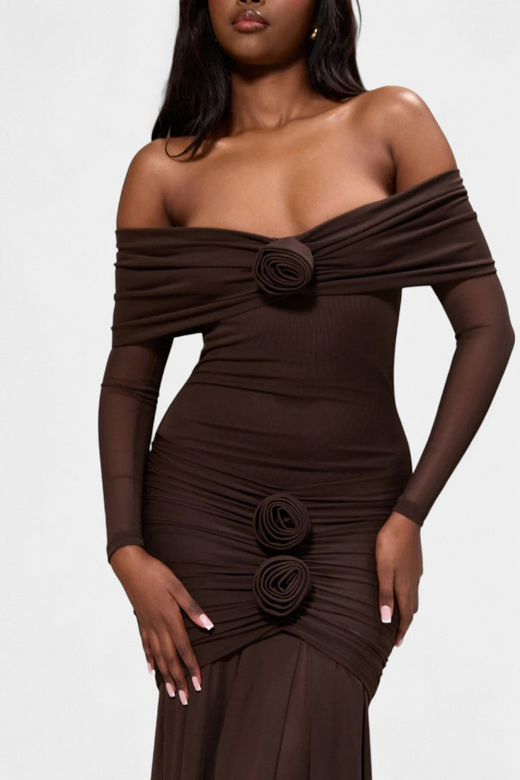 Sephina Robe Longue à Épaules Dénudées et Appliqués Floraux en Relief