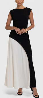 Élégance monochromatique au caractère contemporain. La robe Mallory allie le contraste intemporel du noir et blanc à une silhouette stylisée qui définit la taille avec sobriété et style. Un choix raffiné pour élever facilement votre look quotidien.