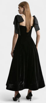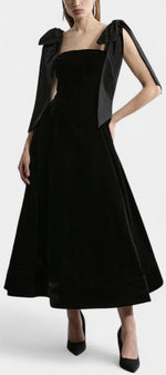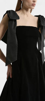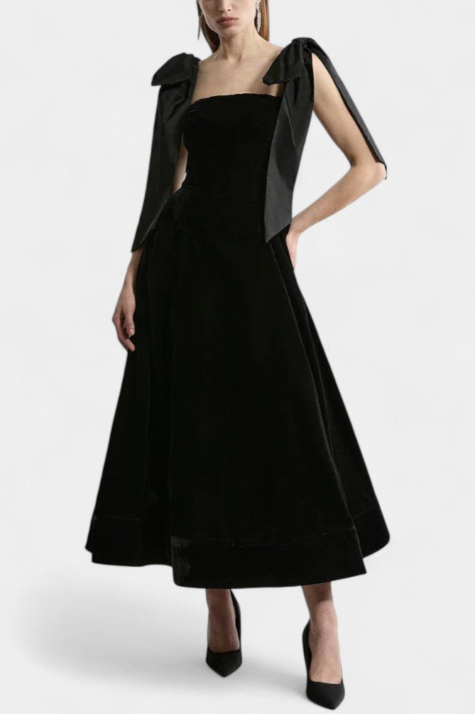 Romantique et raffiné, la robe Ajla donne vie à l'élégance nocturne avec sa luxueuse finition en velours et sa silhouette gracieuse. Conçue avec un décolleté bandeau sans bretelles et des accents de nœud féminins, elle sculpte la taille et les hanches avant de tomber dans une douce longueur midi—parfaite pour des dîners romantiques, des événements formels ou des soirées de Noël.