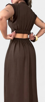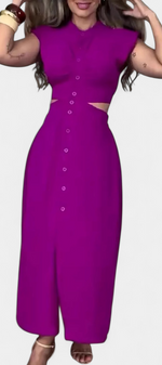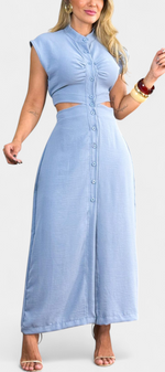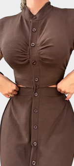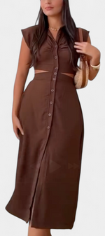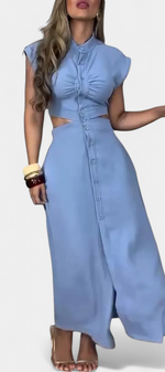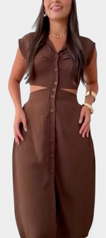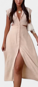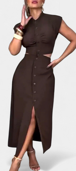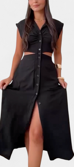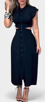 Griselda Robe Midi Cintrée avec Ouvertures à la Taille et Boutonnière Frontale