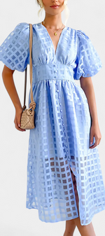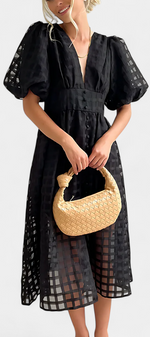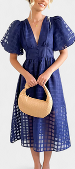 Plongez dans le charme intemporel avec Marigold—une robe midi d'inspiration vintage qui allie des manches bouffantes romantiques à un audacieux design à motif à carreaux. Avec sa silhouette flatteuse et sa structure élégante, elle est parfaite pour ces moments où vous souhaitez vous démarquer avec grâce et confiance.