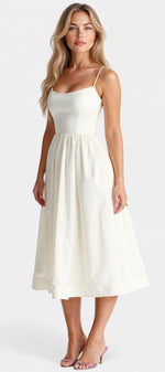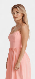 Fraîcheur naturelle avec une silhouette qui s'écoule avec grâce et simplicité. La robe Marvelle allie un design sans manches à une coupe midi aérienne et un tissu doux, créant une pièce légère et polyvalente qui s'adapte à votre rythme lors des journées les plus chaudes.