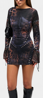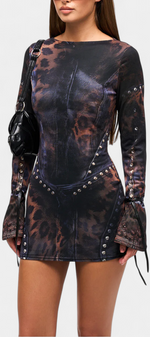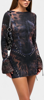 Audacieuse et sophistiquée, la robe Tabea combine une coupe ajustée avec des détails artistiques pour un look qui ne passe pas inaperçu. Son imprimé illusion, conçu en interne, se marie à des manches évasées à pleine longueur et à de délicats nœuds en cuir synthétique aux poignets pour une finition distinctive. Une pièce pensée pour mettre en valeur la silhouette avec élégance et caractère.