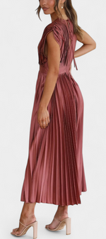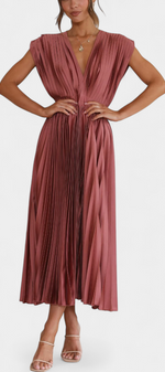 Mireia Robe à Décolleté Drapé en V et Jupe Plissée Fluide